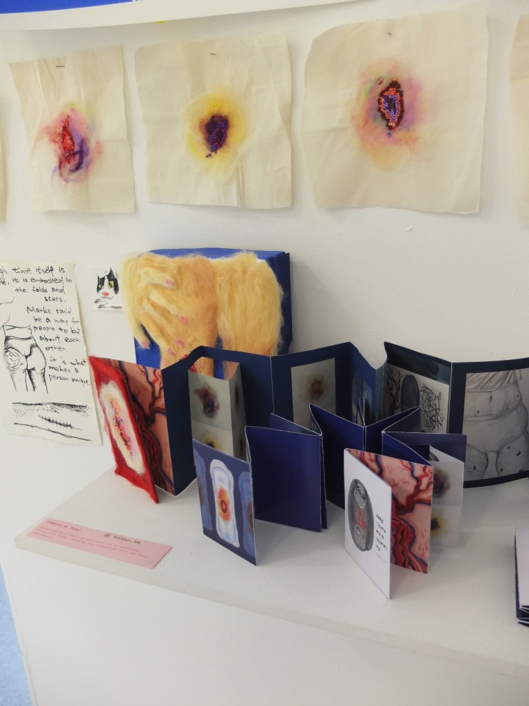 Yingxuan He is currently an illustrator in L5 that focus on bookmaking and series works. Her work for the exhibition focus on exploring skin textures and scarring in different visual forms. She is also displaying another zine centered around drama and traditional Chinese culture.