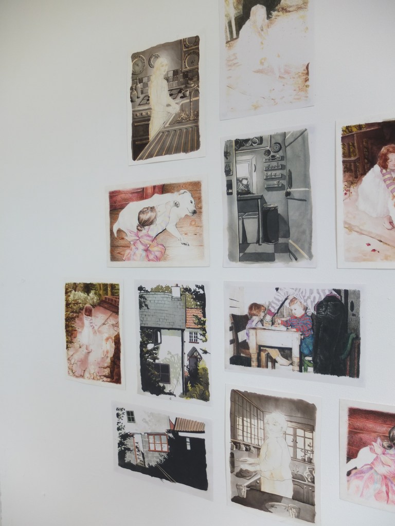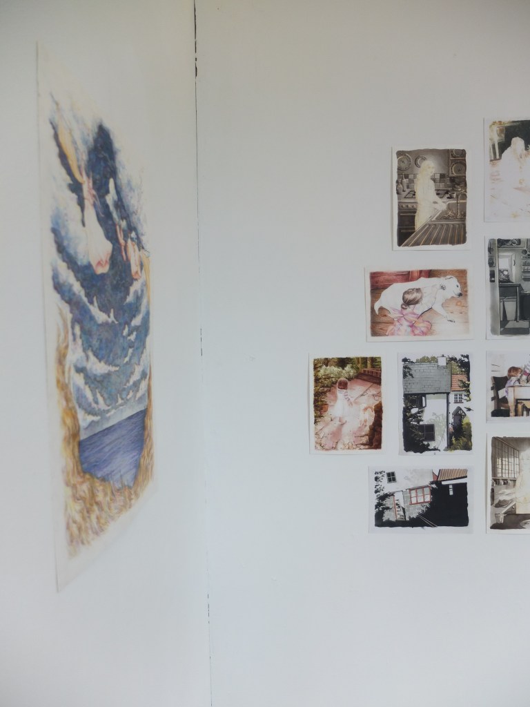 Polly Martin is a visual artist whose work studies nature, people, and connection, using coloured pencil and ink to create soft and hazy images. Her work in the exhibition explores memory and nostalgia through illustrating childhood photos.